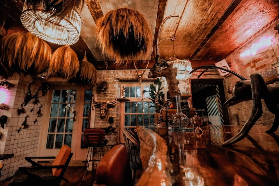 Мы посетили это заведение небольшой компанией, 4 человека, интерьер замечательный, много разных деталей, картины, черепа, крышка унитаза обтянута кожей питона. Приятная музыка. Из минусов - громкость музыки не везде одинаковая - в центральной части зала разговаривать невозможно, по бокам ситуация лучше. Плохое освещение над столами - еды вообще не видно. Стоимость блюд варьируется от 800 до 1600 - порции крохотные, кусочек мяса и капелька соуса с чем-то непонятным, видимо гарнир. Еда не вкусная, холодная, ни одно из четырех блюд не понравилось. Думаю сюда можно зайти и выпить вина и полюбоваться интерьером, но ужинать здесь не стоит - сплошное разочарование(((
