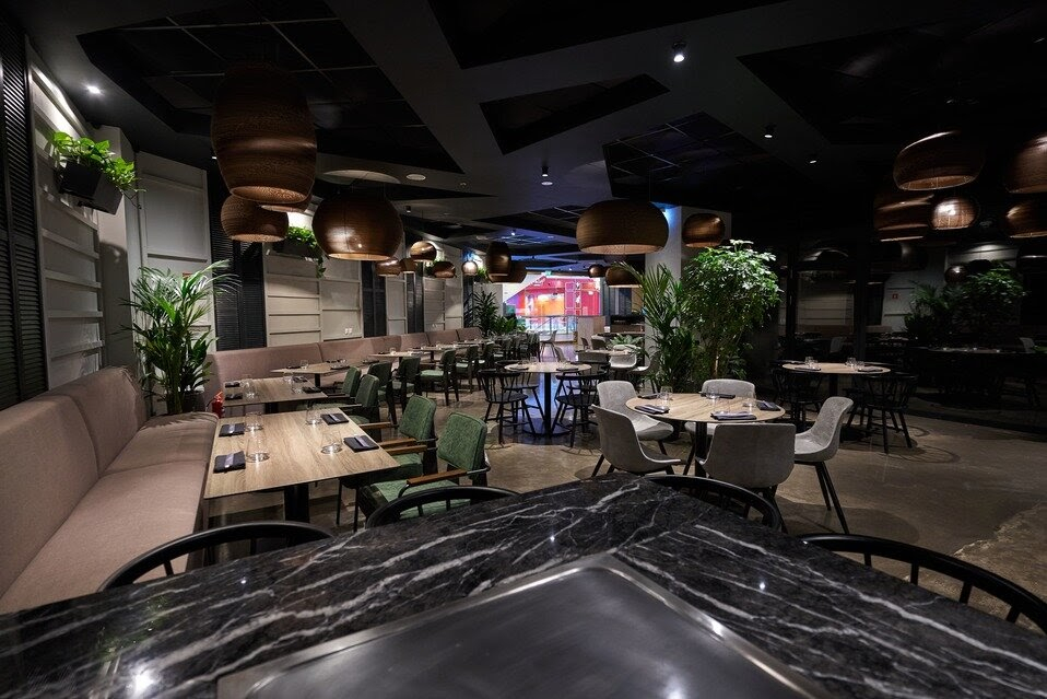 Ресторан находится на последнем этаже ТЦ Галерея. В отличие от остальных заведений, здесь очень тихо, уютно и атмосферно. В меню азиатская кухня. Гриль готовят при вас на специальном столе, выглядит эффектно. Все свежее, вкусное, порции средние, ценник также средний.